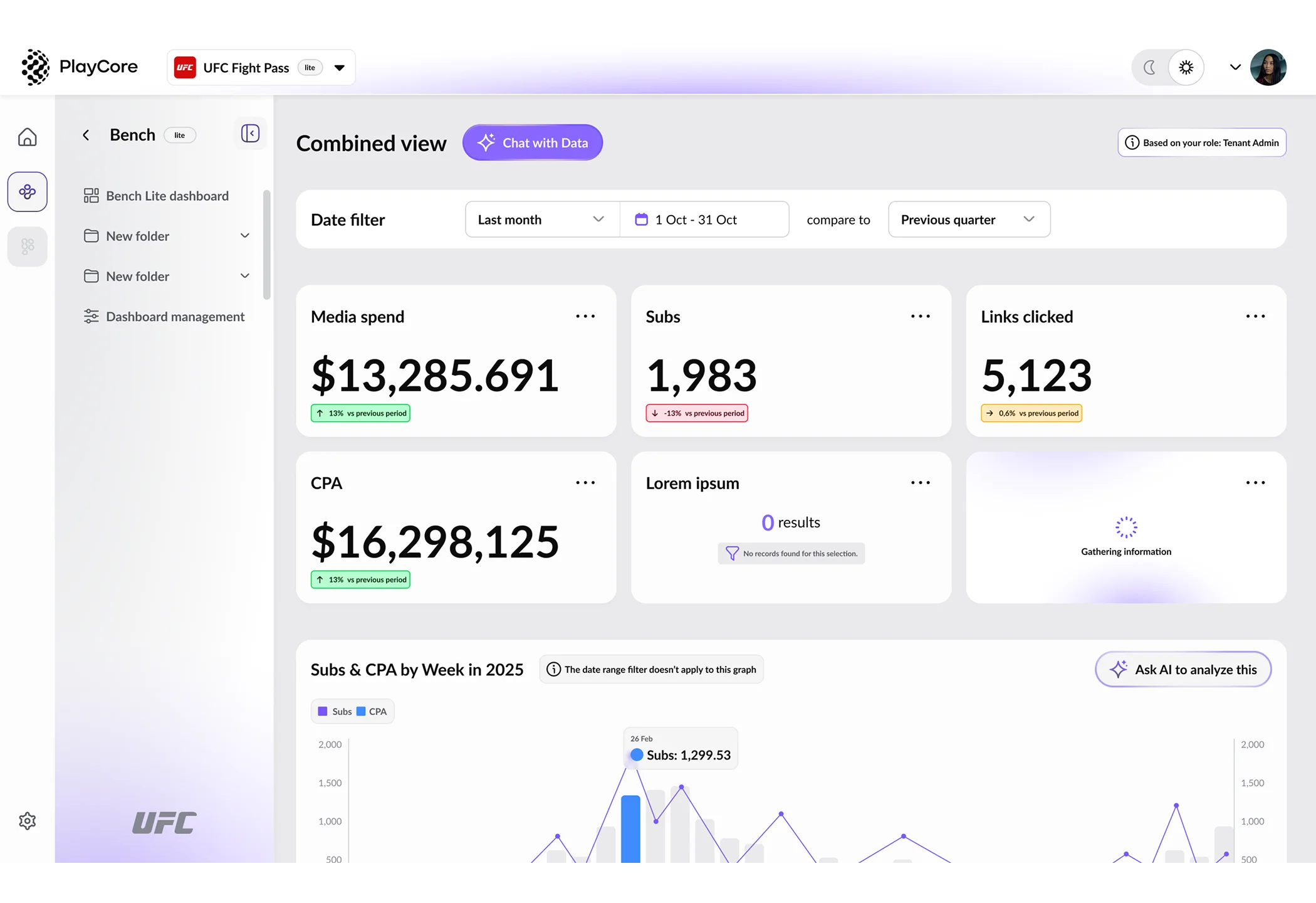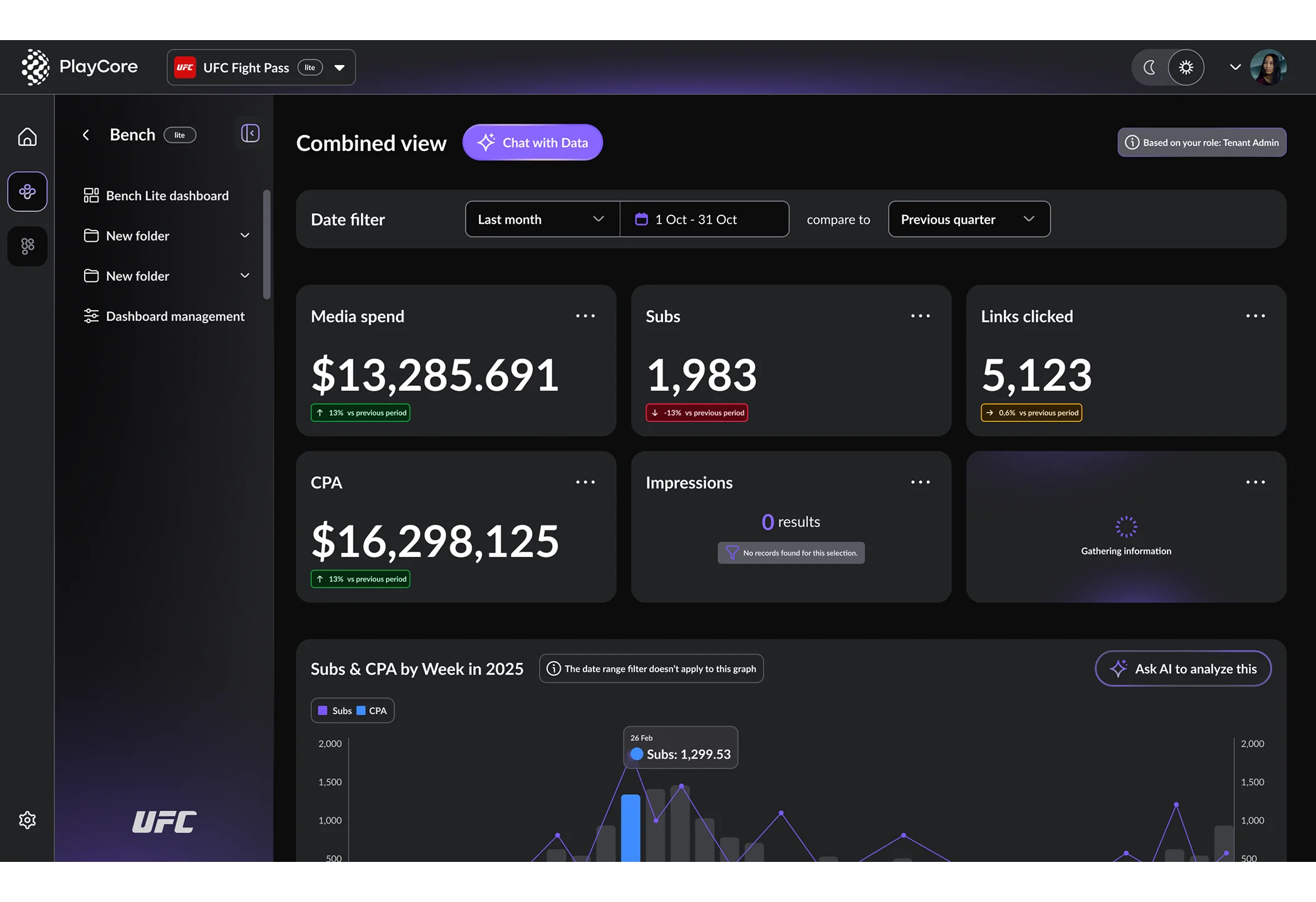 PlayCore brings your data, AI insights, dashboards and apps together into a single performance hub.